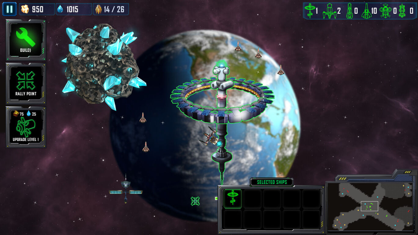 艦隊を徐々に構築し、各ミッションの前に、使用する船を選択できます。 船を建造した後、ミッション中に生き残った船は、利用可能な艦隊の一部になります。