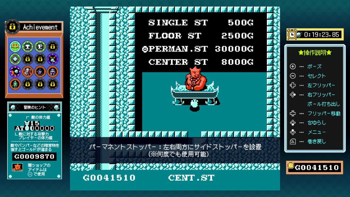 ステージは全6面。得点を稼いでゴールドを貯めれば、ステージ途中の「闇ショップ」でストッパーやフリッパーを購入することが可能。