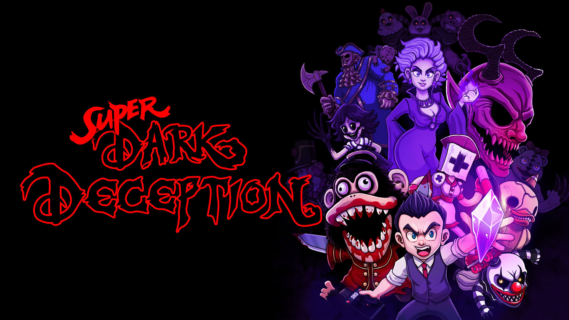 スーパー ダーク デセプションは、ヒット ホラー ゲーム、ダーク デセプションの楽しいレトロなバージョンです。これはゲームの最初の章であり、最初の 4 つのレベルが含まれています。今後のすべての Super Dark Deception DLC チャプターは価格に含まれています。