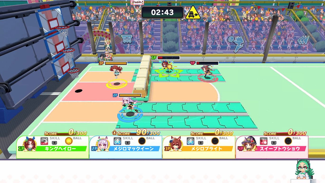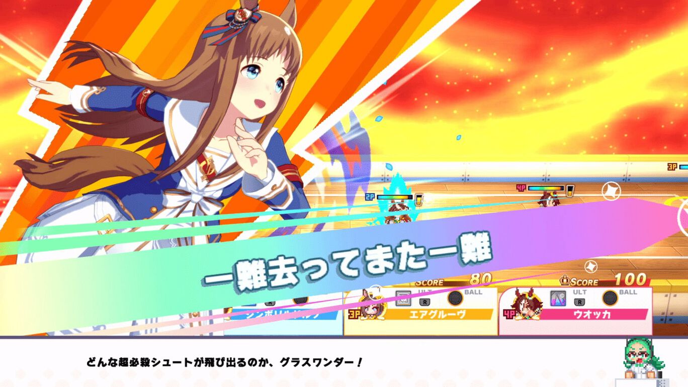 ウマ娘たちが挑戦するのは、「大障害」「バスケ」「ドッジ」「大食い」の4競技。競技ごとにチームから代表のウマ娘が出場し、勝利を目指します。内容やルールがハチャメチャな4競技で、ウマ娘を操作して1位を目指しましょう。