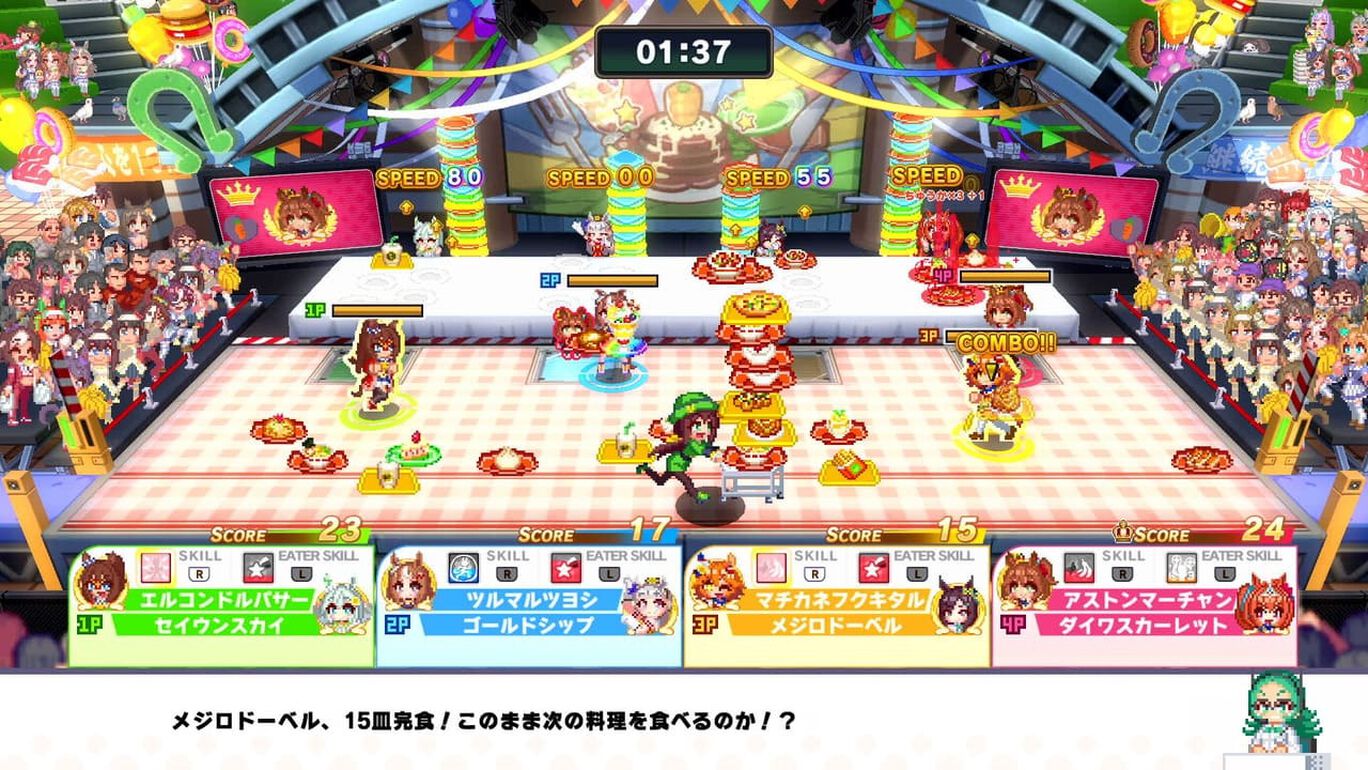 ドットで描かれたウマ娘たちが、春のファン大感謝祭の特別イベント「ハチャメチャGP(グランプリ)」に挑みます。