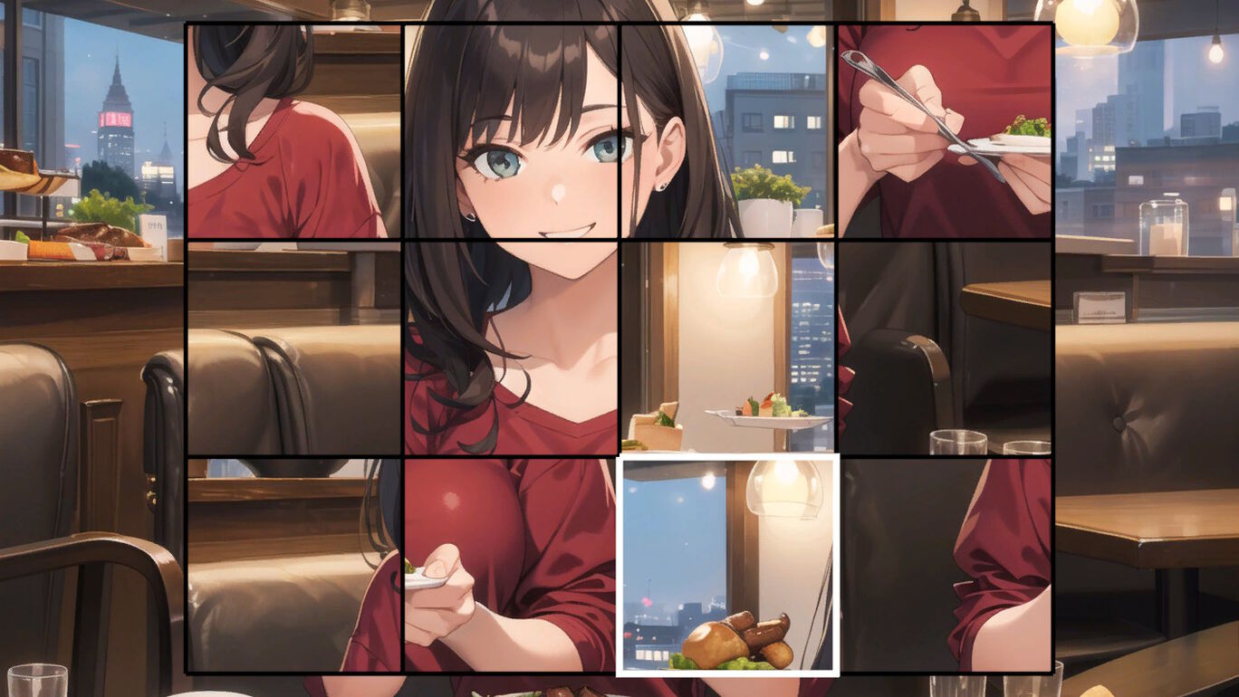 可愛いアニメ絵の女の子パズルを完成させよう!パズルが完成すると、好きな時間にギャラリーで女の子たちを鑑賞することができます。