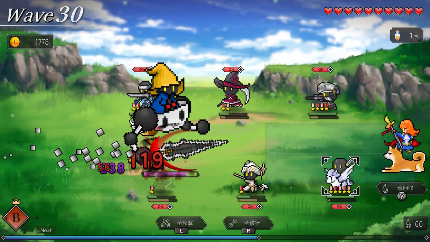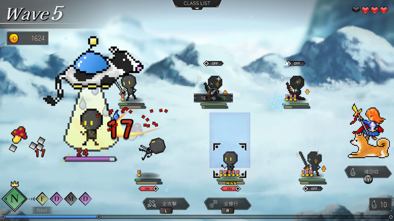 自軍にはの6体のユニットがおり、それぞれ [攻撃] と [修行] の二つのモードを切り替えることができます。