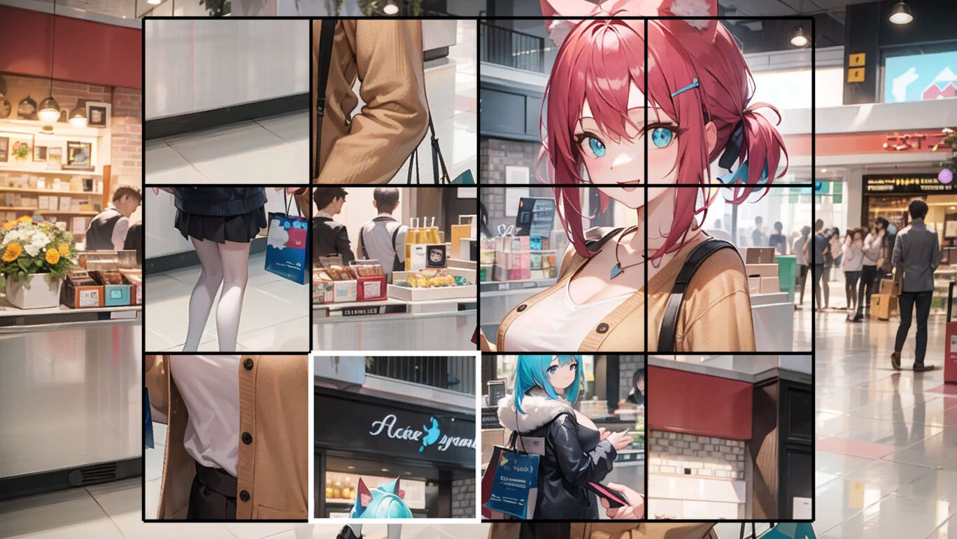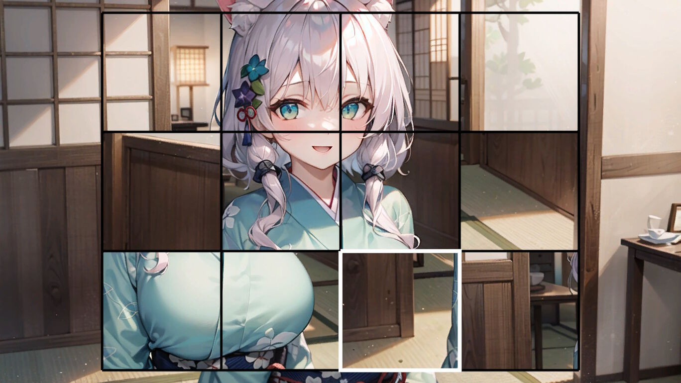 可愛いアニメ絵の女の子パズルを完成させよう!パズルが完成すると、好きな時間にギャラリーで女の子たちを鑑賞することができます。