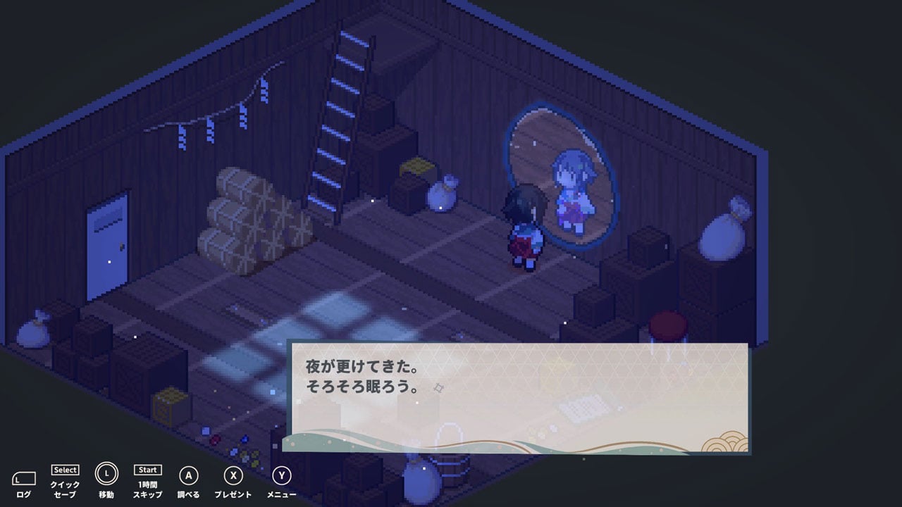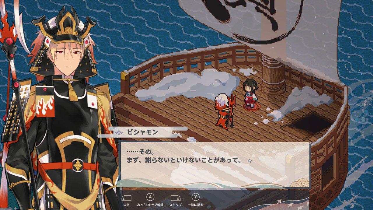 ドット絵で表現された宝船の中を移動、キャラクターに話しかけたり船内のオブジェクトを調べたりすることでイベントのフラグを立てていきます。