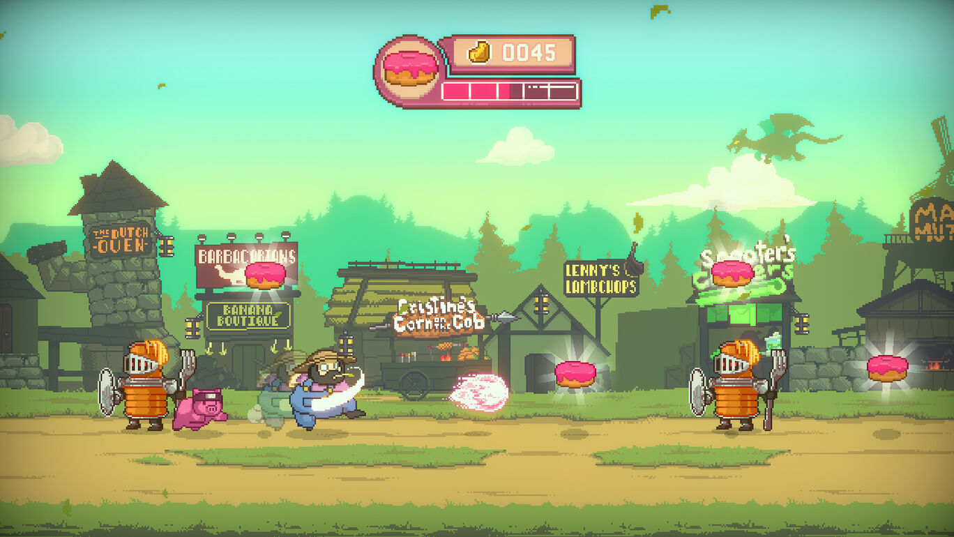 武器を使って敵を倒し、危険な罠を回避し、クランのリーダーと対峙します。十分なドーナツを集めると、ドウジュツモードに入ります。これは一時的で無敵のモードで、大きな投射物に変身します。