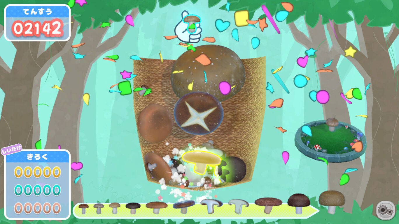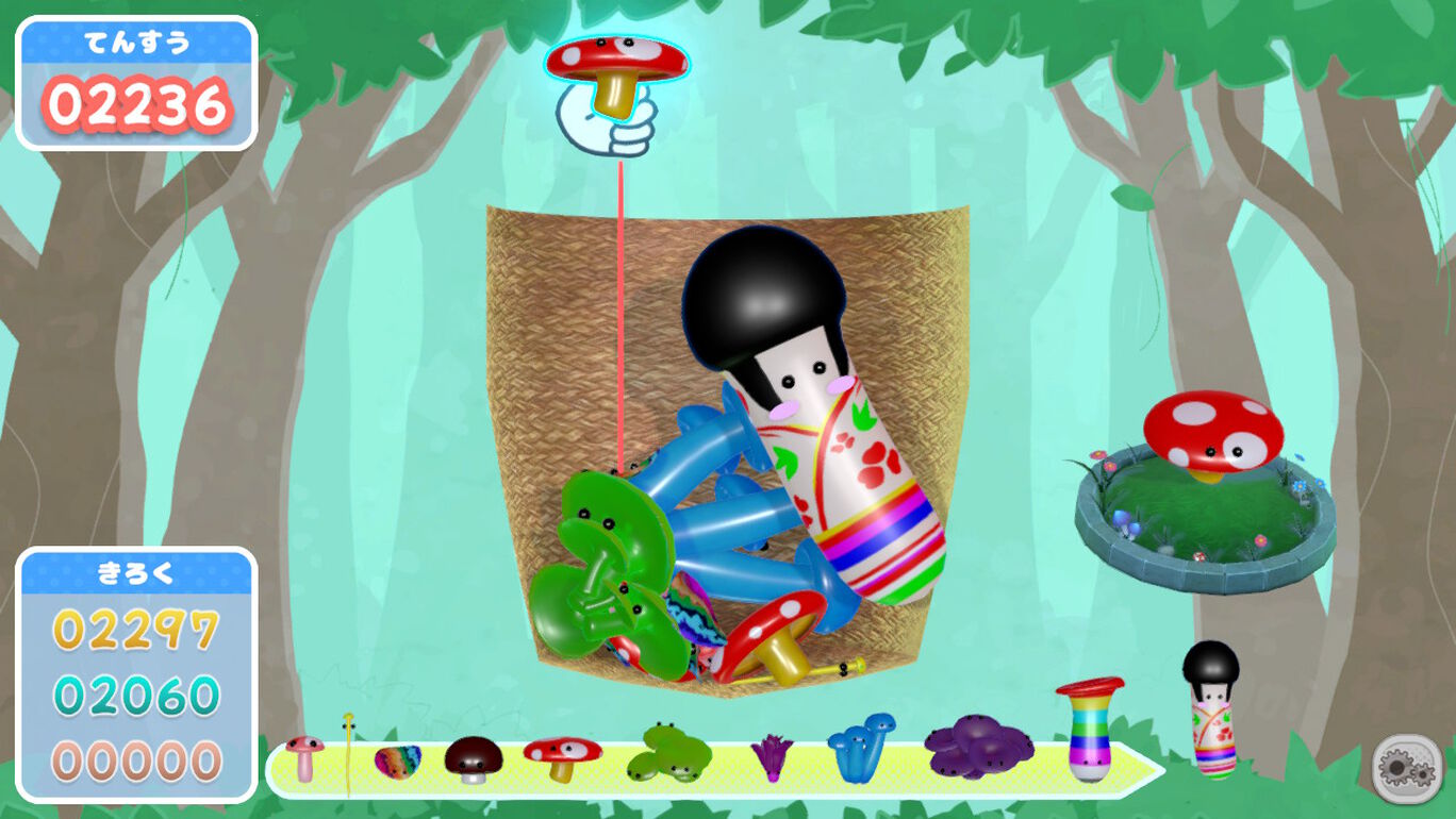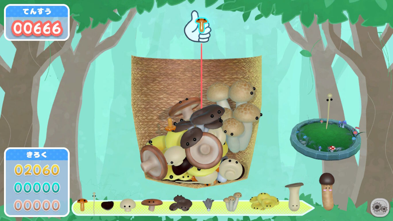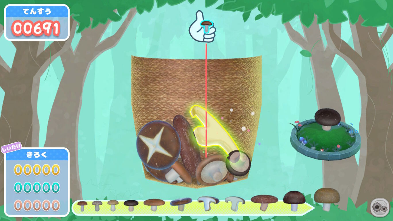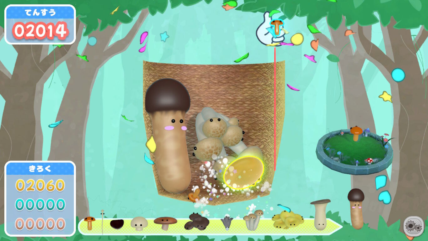 かごからあふれないように、きのこを変化させて高得点を目指そう!