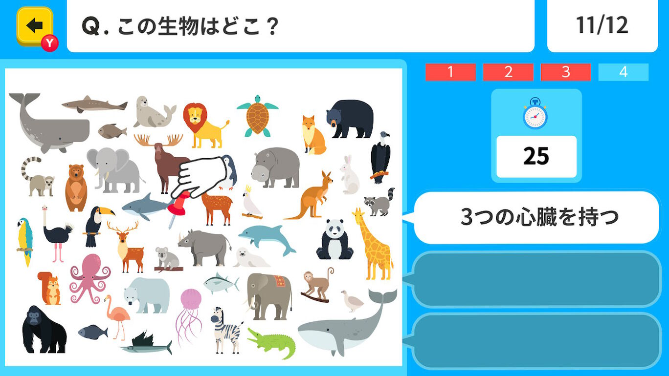 1つずつ表示される3つのヒントが表す場所や部位を予想して、