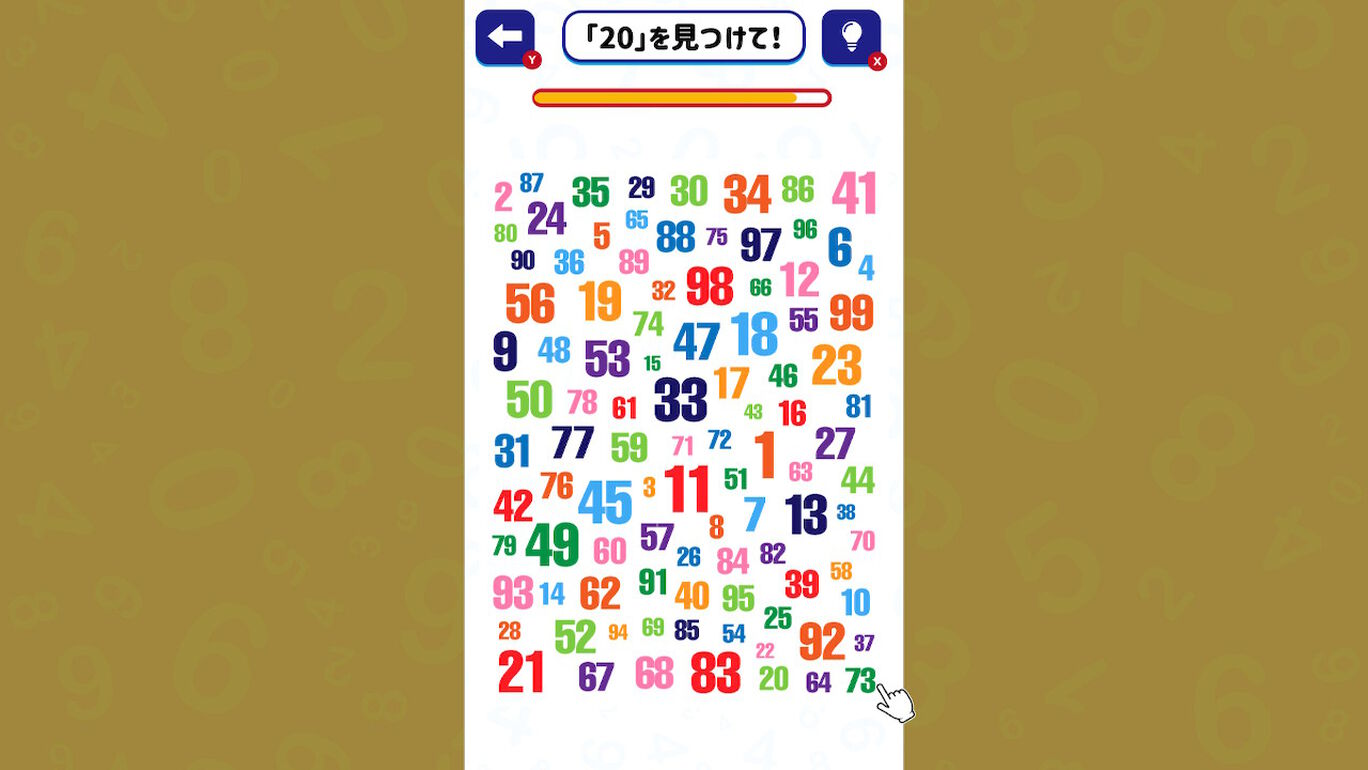 指示された数字を制限時間内に見つけることで、