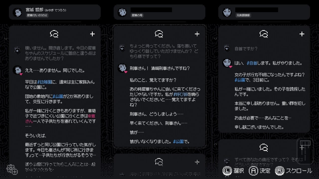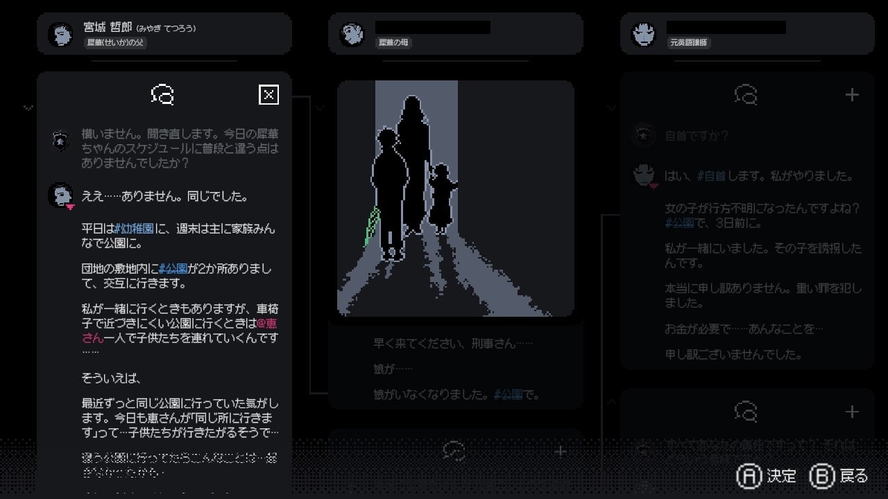 退職した元警察官・清崎蒼をサポートして、陳述と手がかりを集め、事件の真相を確かめましょう。