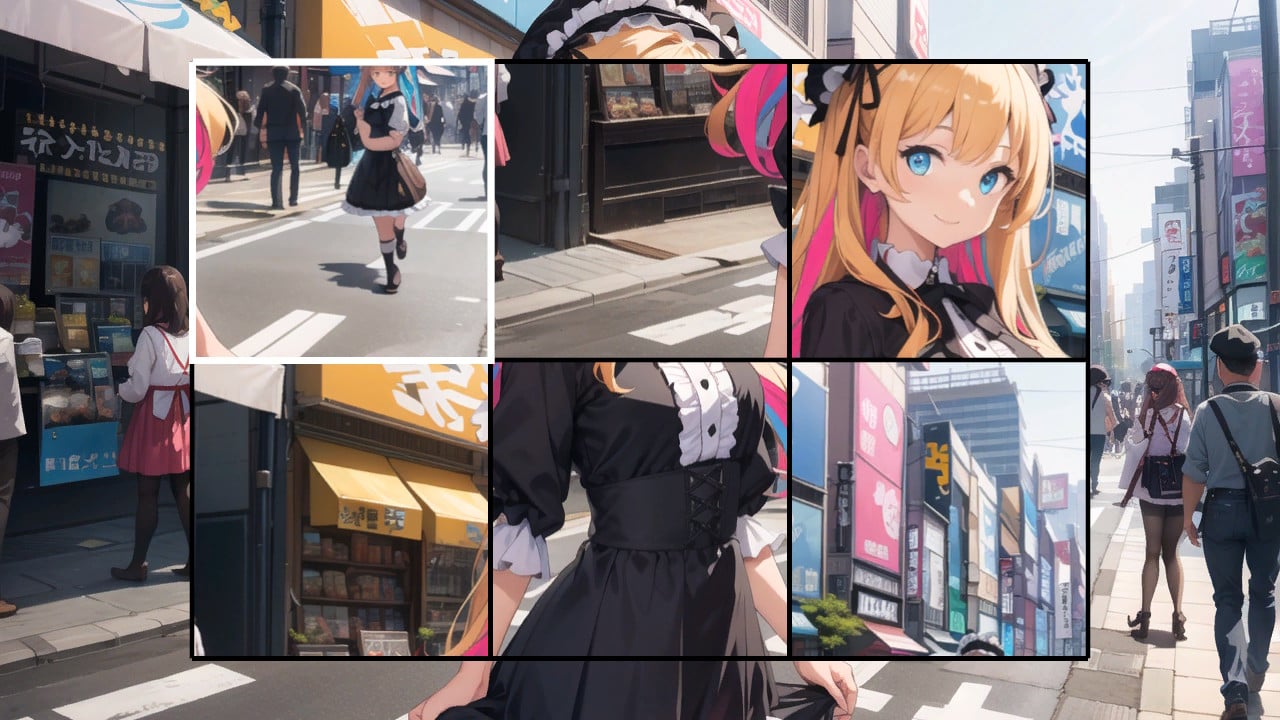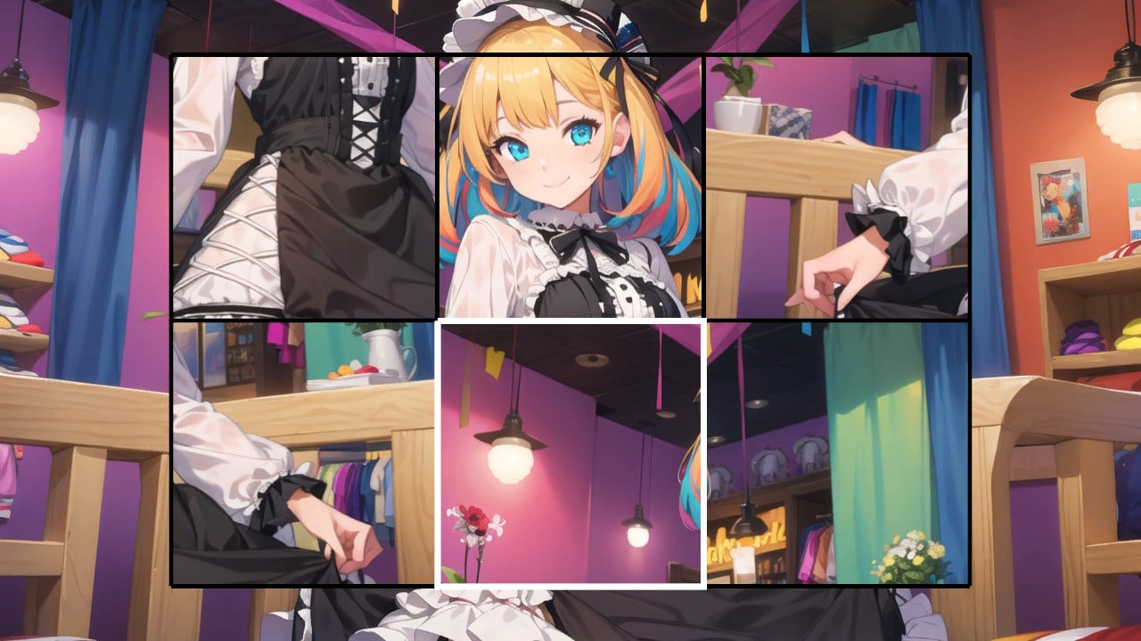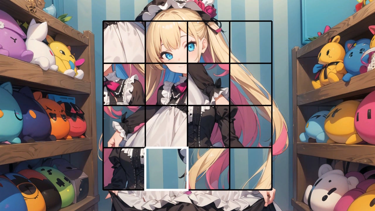 可愛いアニメ絵の女の子パズルを完成させよう!パズルが完成すると、好きな時間にギャラリーで女の子たちを鑑賞することができます。