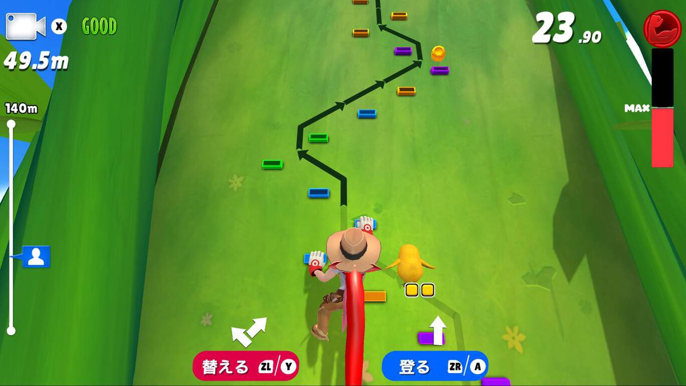 壁を登り、頂上を目指せ!金メダルも視野に!可愛いキャラクターたちと一緒に、1人から4人でプレイして、最高の高さを目指す冒険へ!手軽に楽しむ斬新なクライミングゲームが登場!