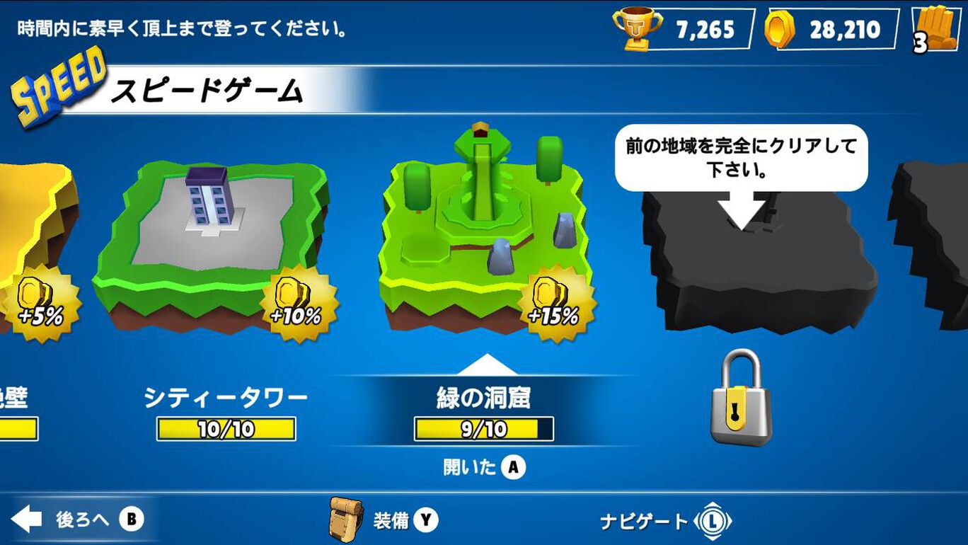 ・全てのステージを早く登り、最高の成績を目指しましょう。