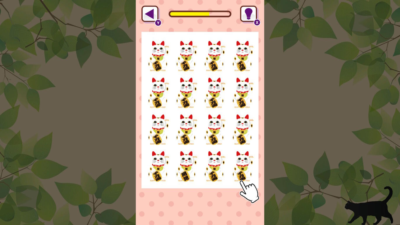 ・周りと違うデザインのネコを見つけたら制限時間内にそれをタッチ!
