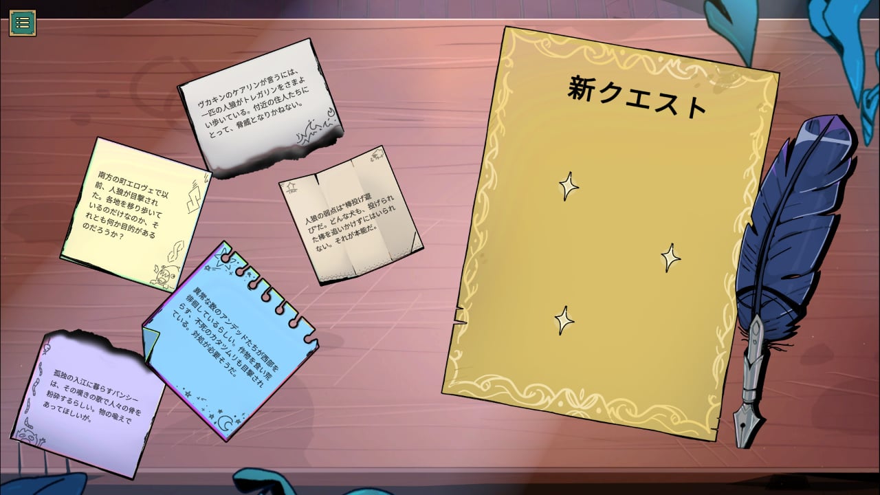 耳寄りな情報を集めてクエストを作成することも、旅人亭の人気サービスのひとつ。完成したクエストは掲示板に張り出して、冒険者たちに引き受けてもらいましょう。