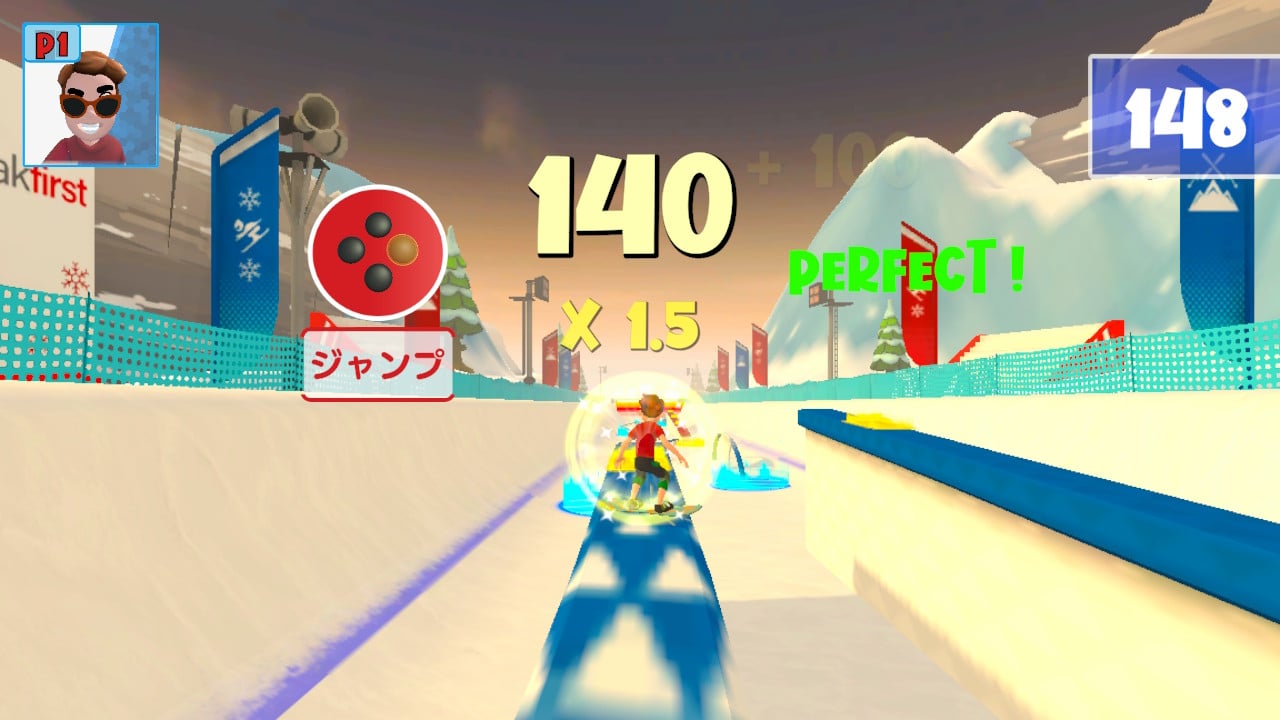 ▼スロープスタイル:レールの上にジャンプして飛び乗り、バランスを保とう。ボックス上や空中ではたくさん技を決めて、高得点をゲットしよう!