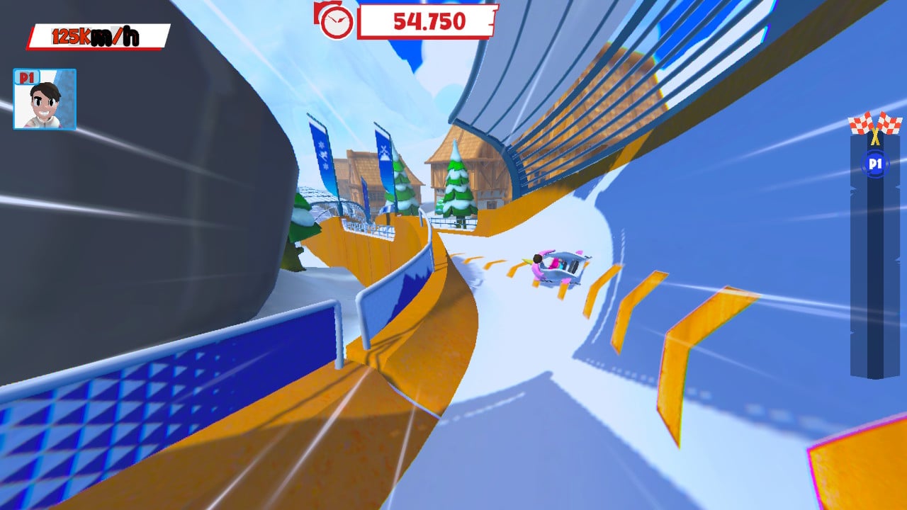 ▼ボブスレー:コツは2つ。ボブスレーを思いっきり押してから乗り込むこと。そして、コースをしっかり見て正しい軌道を選ぶこと。スピードを楽しみながら慎重に操作をし、できるだけ速くゴールしよう。