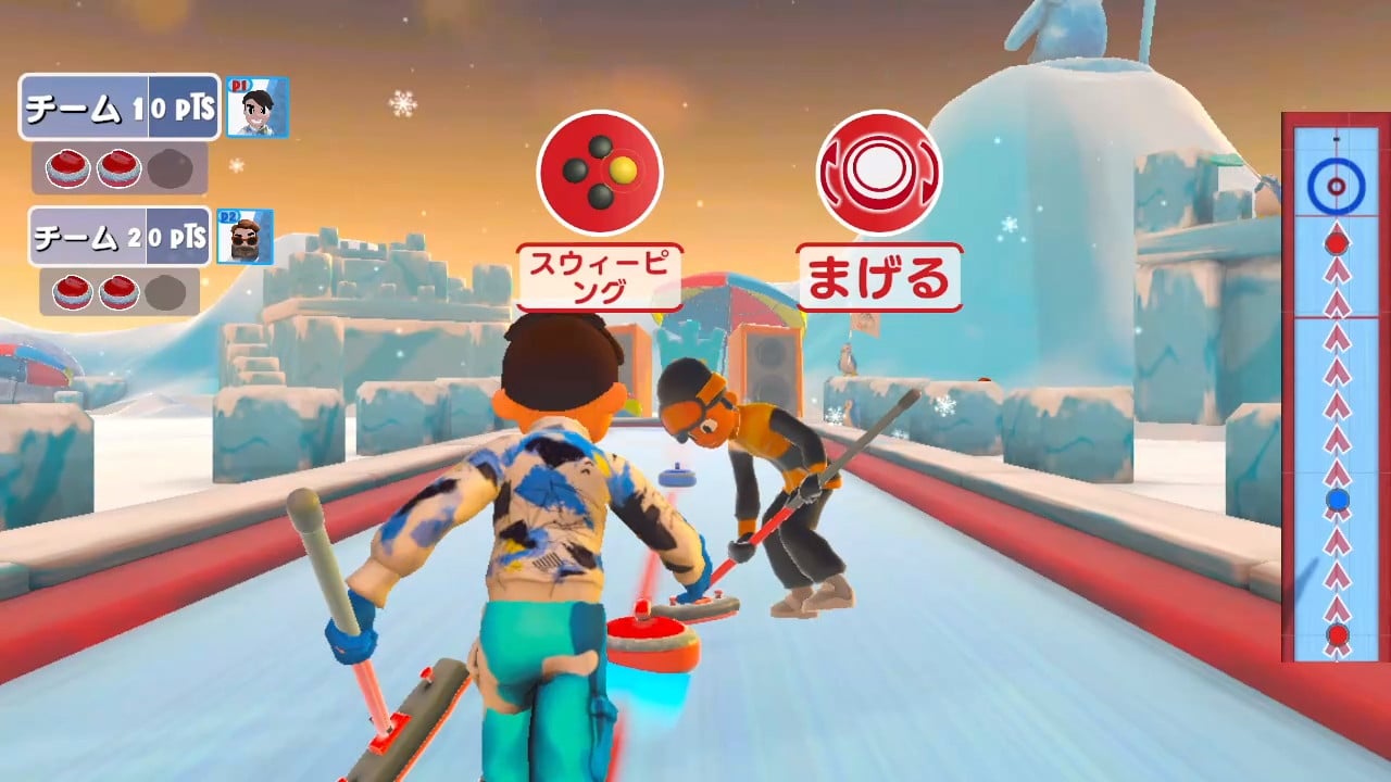 ▼カーリング:ターゲットの中心を狙って石をショット。スィーピングをうまく使い、戦略を練って高得点をゲットしよう。