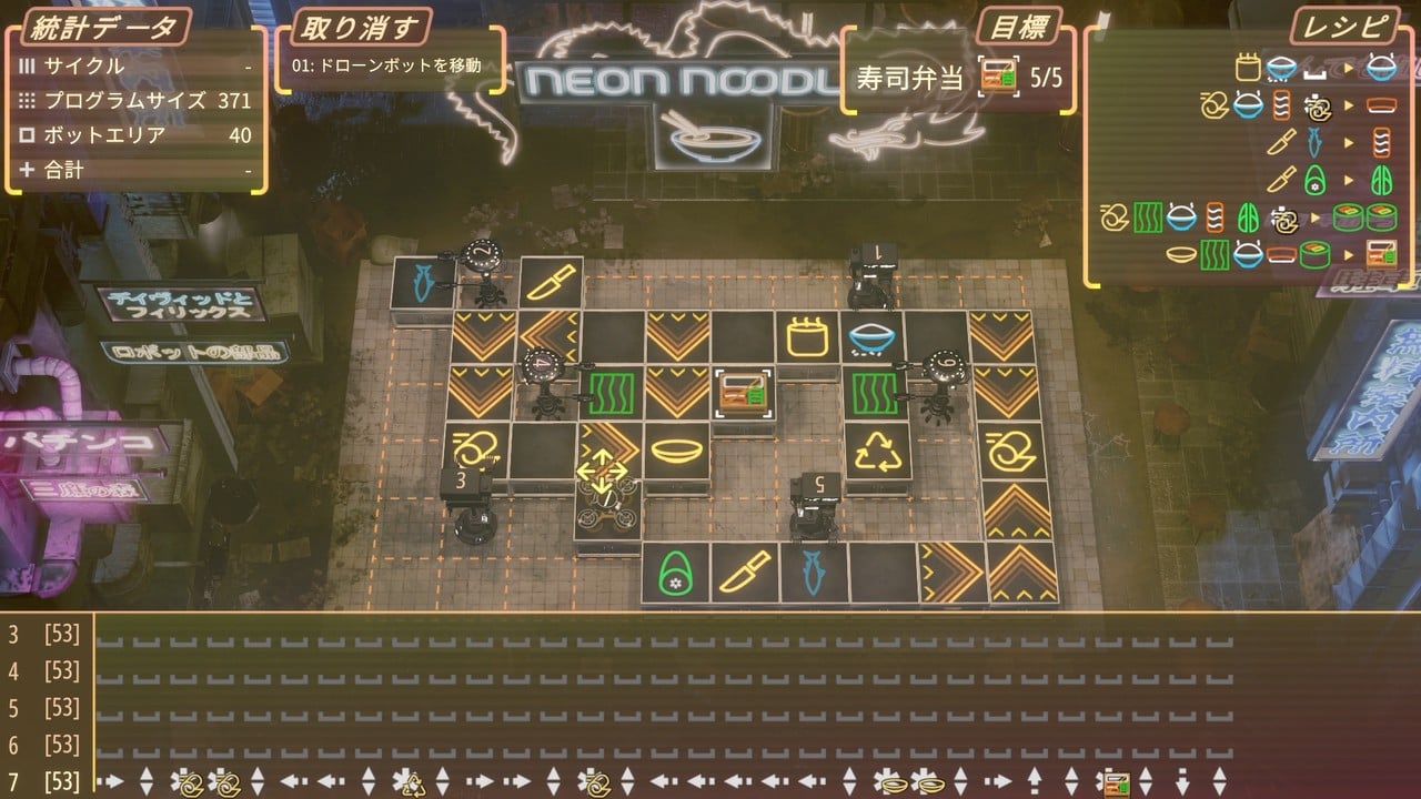 『Neon Noodles』は、料理をテーマにしたオープンエンドの機械構築型パズルゲームです。ロボットシェフをプログラムし、400種類のユニークな材料を使いこなし、250種類に及ぶ世界中のレシピを調理してください。魅力的なクライアントからの手ごわい課題をこなし、複雑で美しい自動化機構をデザインして、《ネオンヌードル》の背後にある真実を明らかにしていきましょう。人類の未来を、強欲な大企業の魔の手から取り戻す力が、あなたにはありますか?
