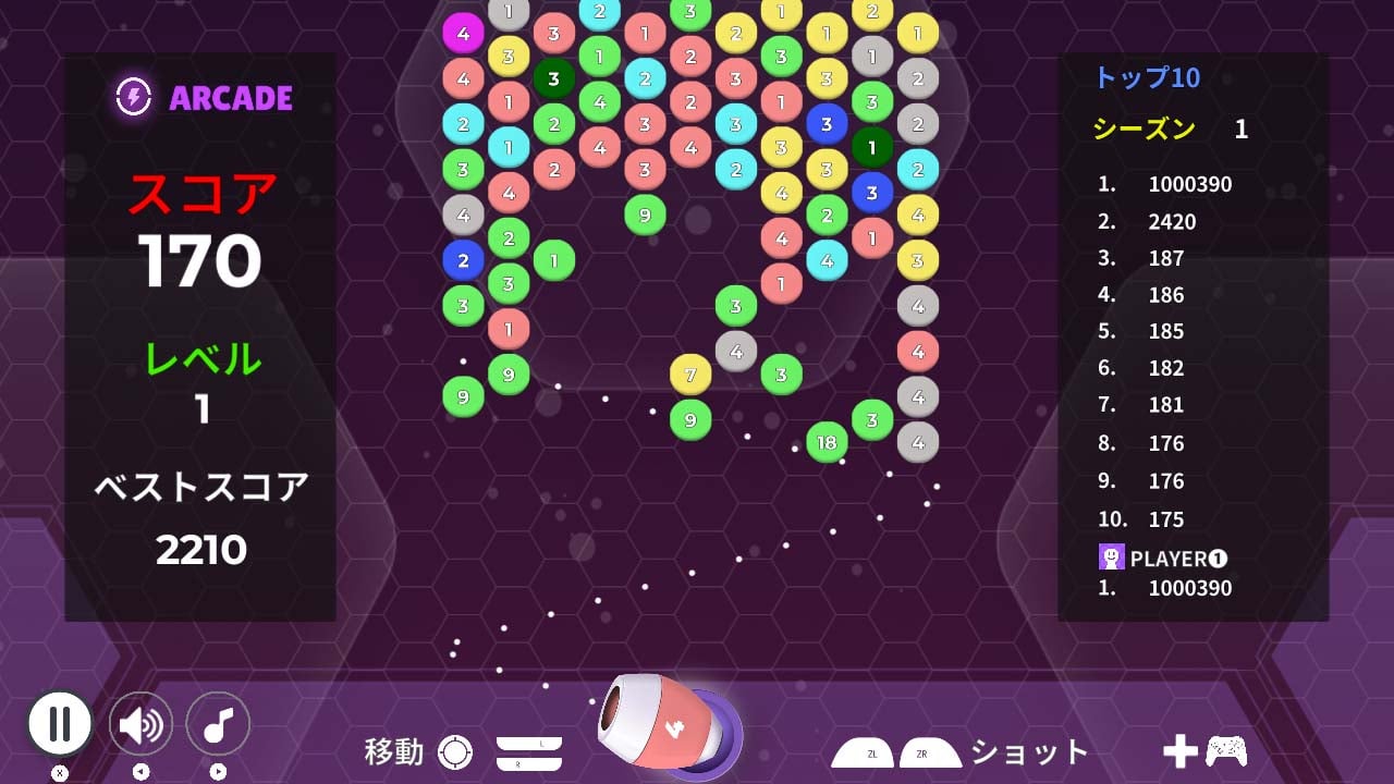★アーケードモード:色をマッチさせるだけでなく、同じ色の全番号バブルの合計もマッチさせることで、さらに難易度を上げましょう。