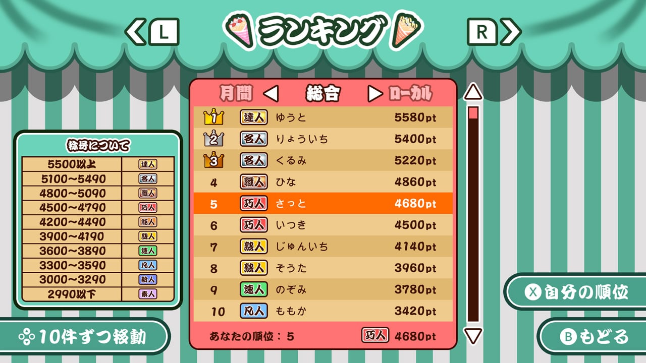 ランキングの上位を目指して、クレープをいっぱいつくろう!