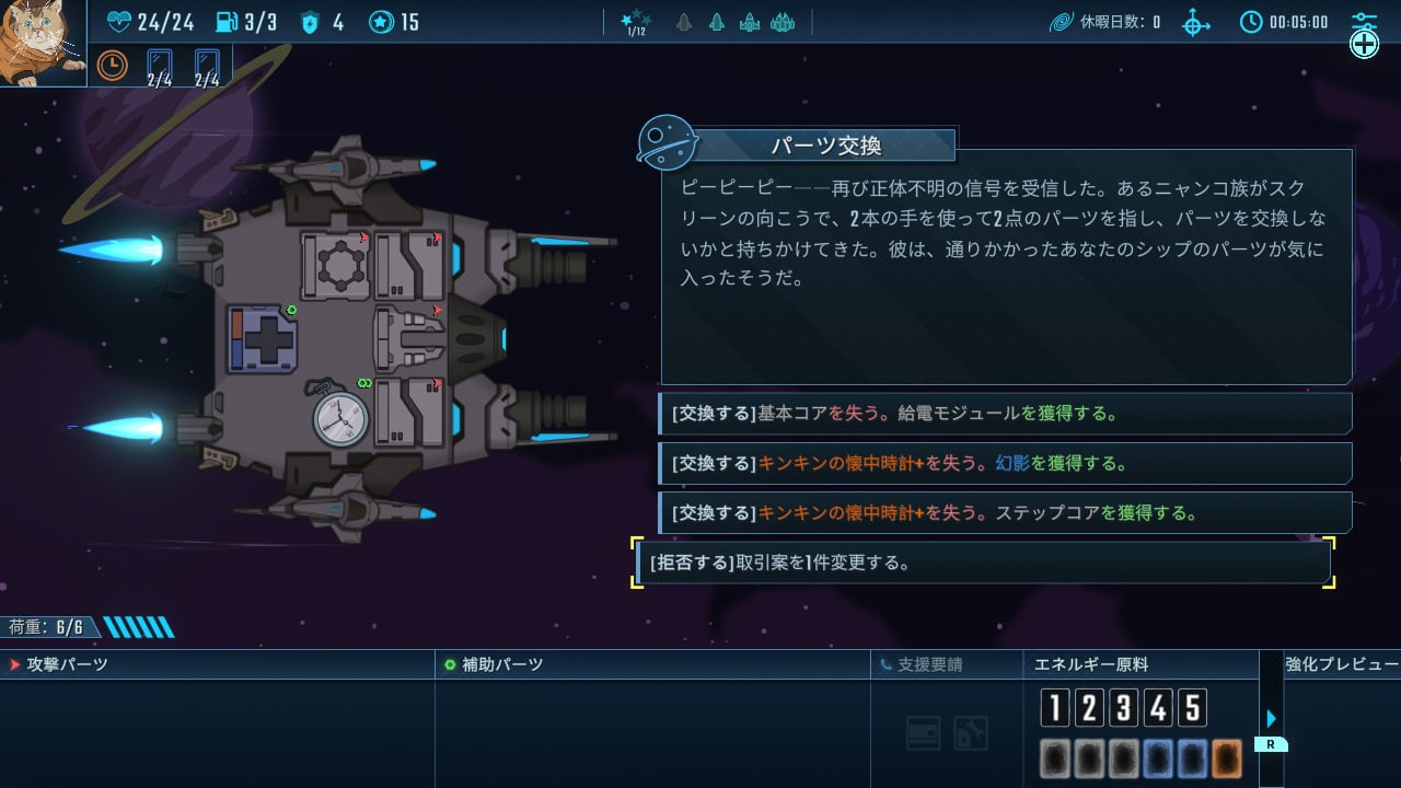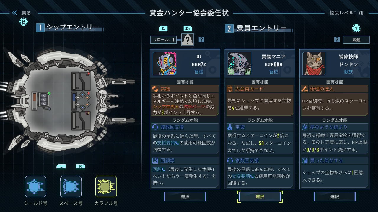 どのスターシップも独自のアドバンテージを持ち、100種類近くの専属部品を持っています。(PS:協会は初期部品のみを提供するので、残りの部品はハンターたちが旅先で自分で探して入手してください。)"