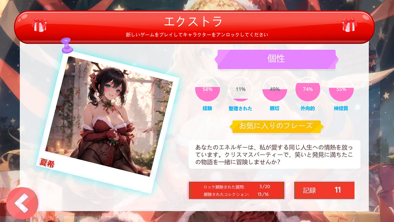 -彼女のクリスマスの夢や特別な瞬間を含む、各キャラクターの隠された秘密を明らかにしましょう。