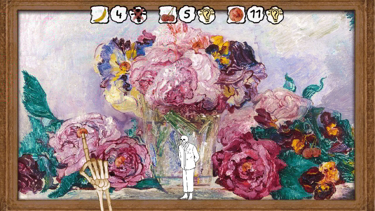 あなたはダンディでスーツを着た芸術を愛する骸骨で、最近墓から甦り、絵画の中に入り込んだり絵画の中を旅したりする能力を持っています。この能力を使って、絵画の裂け目を修復したり、絵画の中に住んでいる人々のために失われたアイテムを見つけたりするのに役立ちます。