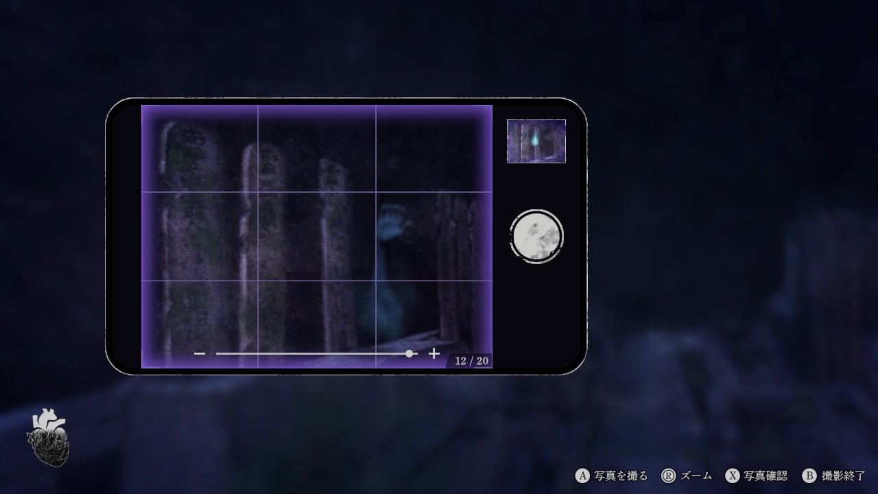 主人公は呪いに心身を苛まれています。心霊スポットで霊に襲われたり、長時間探索を続けると主人公の受けている呪いが進行してしまいます。呪いを受けた主人公に残された時間はあとわずか。無理をして探索を続けると呪いに完全に蝕まれ、死を迎えてしまうことになるでしょう……。