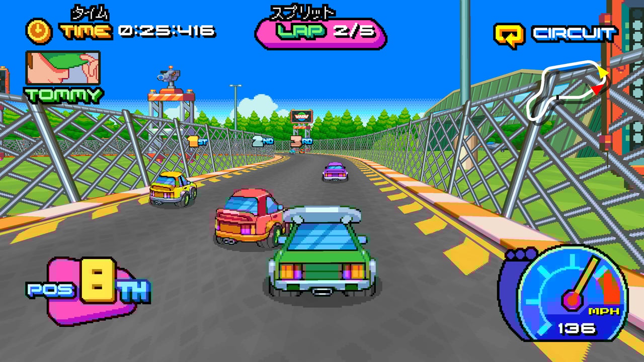 首が折れそうなほどに高速なパワースライドを決めて、ピクセルパーフェクトなビジュアルが命を吹き込んだ、ダイナミックかつ鮮烈な2.5Dワールドを駆け抜けよう。ボリュームをグッと上げれば、響きまくるビートに激烈なギターソロ、ハイオクエナジーが盛り上げまくるサウンドトラックがこの『Victory Heat Rally』をヒートアップさせていく!
