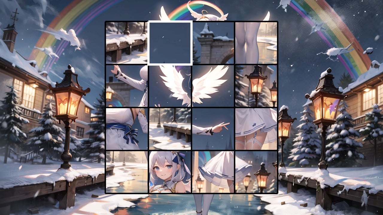可愛いアニメ絵の女の子パズルを完成させよう!パズルが完成すると、好きな時間にギャラリーで女の子たちを鑑賞することができます。