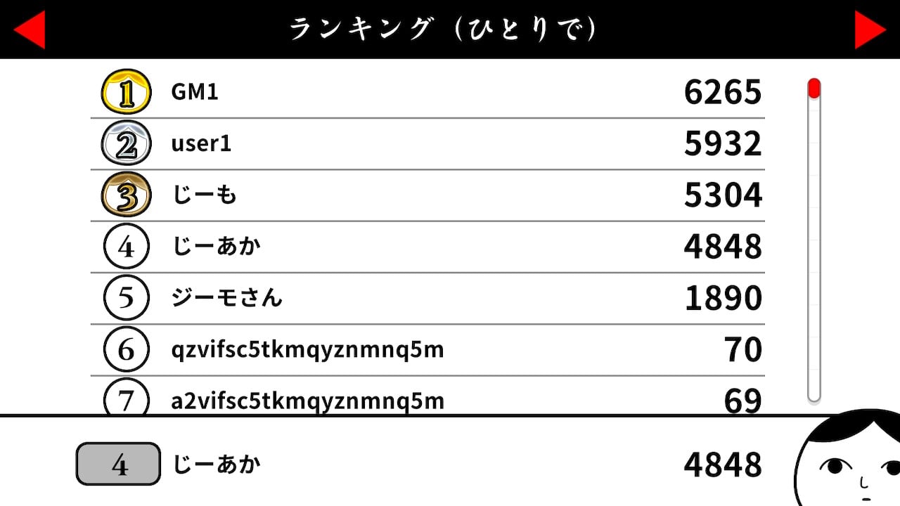 世界中の「お前ゲーム」プレイヤーとスコアで競い合いましょう。