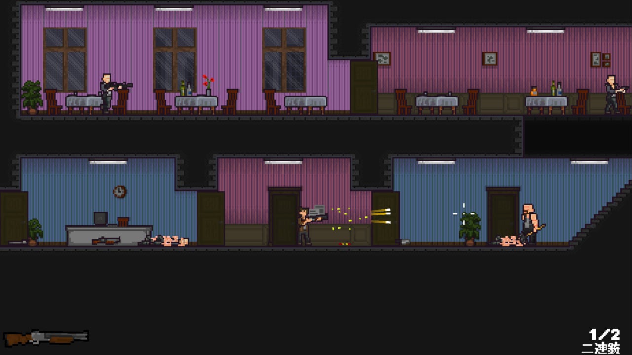 ナイフや銃を振り回すチンピラたちで溢れる各レベルをどう一掃するかは君の戦略と戦術に掛かっている。