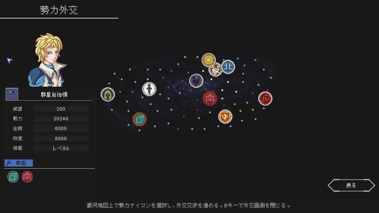 銀河には十数の大勢力と無数の小勢力が存在。外交工作で同盟国や従属国を増やし、敵対勢力の結束を瓦解させよう。