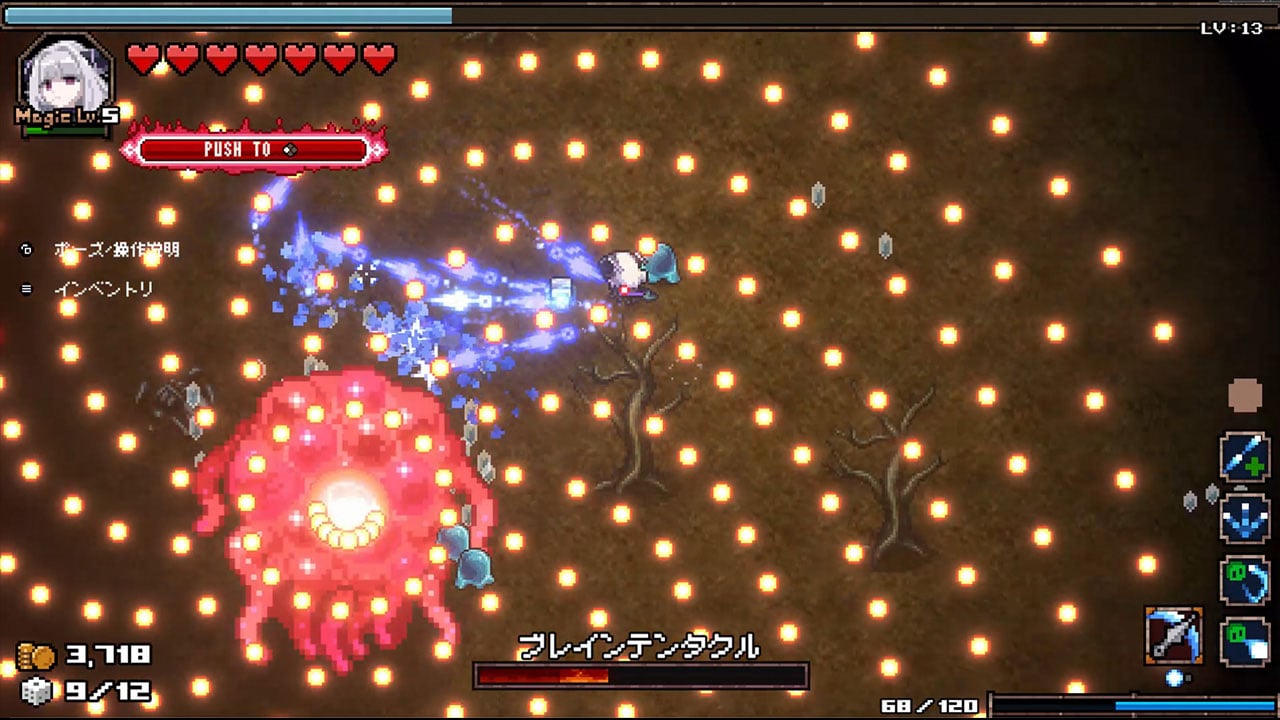 プレイヤーキャラクターの撃ち出すショットは、LVUP時に出現するカスタマイズアイテムを自由に組み合わせることで、その性質を変化させ、「自分だけのショット」で戦うことになります。次々に襲い来る闇の軍勢を倒し、無事生還しましょう。