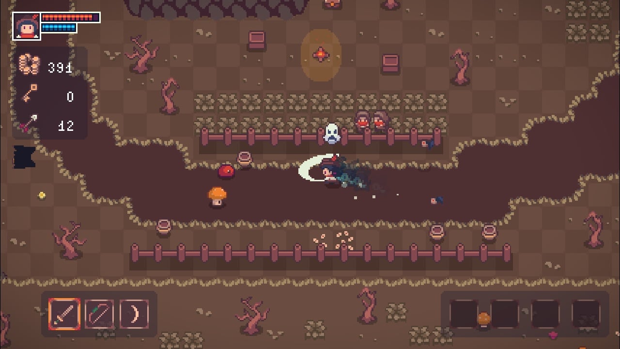 * 武器庫:剣、弓、ブーメラン、爆弾、魔法の杖を敵に合わせて使い分ける。