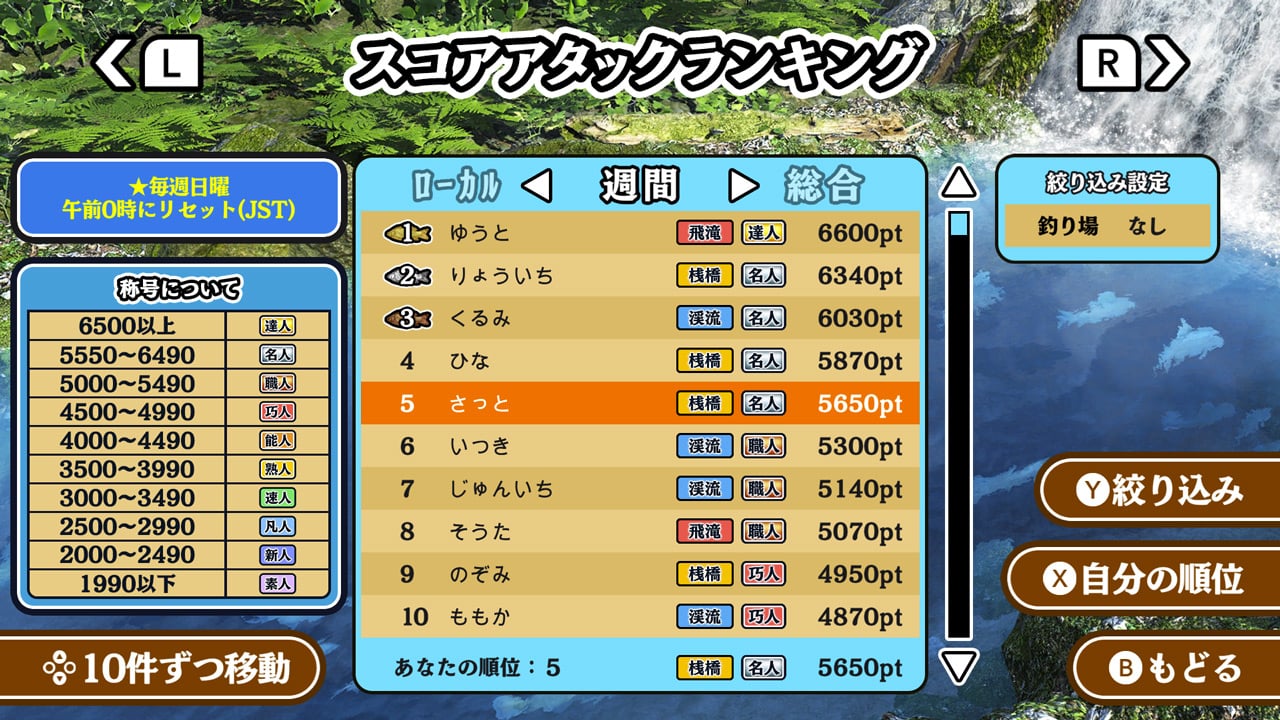 スコアアタックや対戦で釣った魚が図鑑に登録されるぞ!