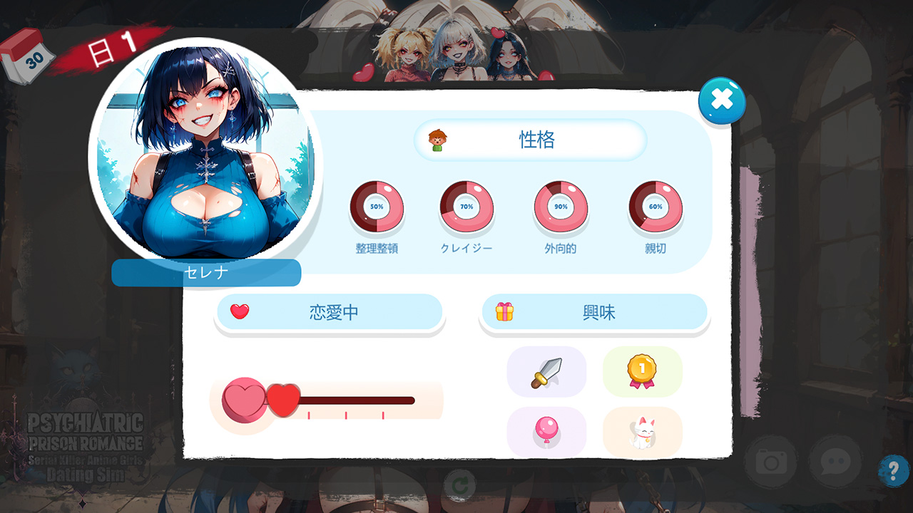 -12人の少女、12の抗いがたい狂気 – 神秘的な策略家から、致命的な執着を持つ愛らしいサイコパスまで、それぞれの囚人には独自の個性がある。彼女たちの心を動かすもの… そして暴走させるものを見つけ出せ。
