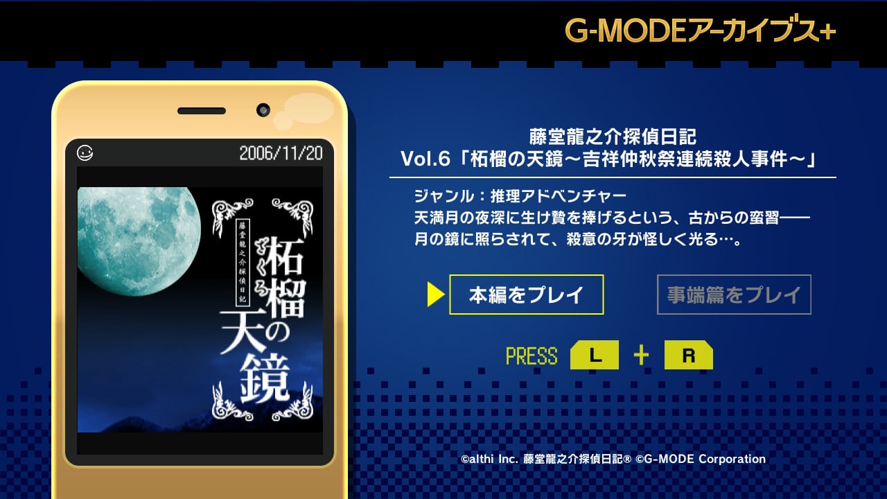 G-MODEアーカイブス+ 藤堂龍之介探偵日記 Vol.6「柘榴の天鏡~吉祥仲秋祭連続殺人事件~」 [公式↗]