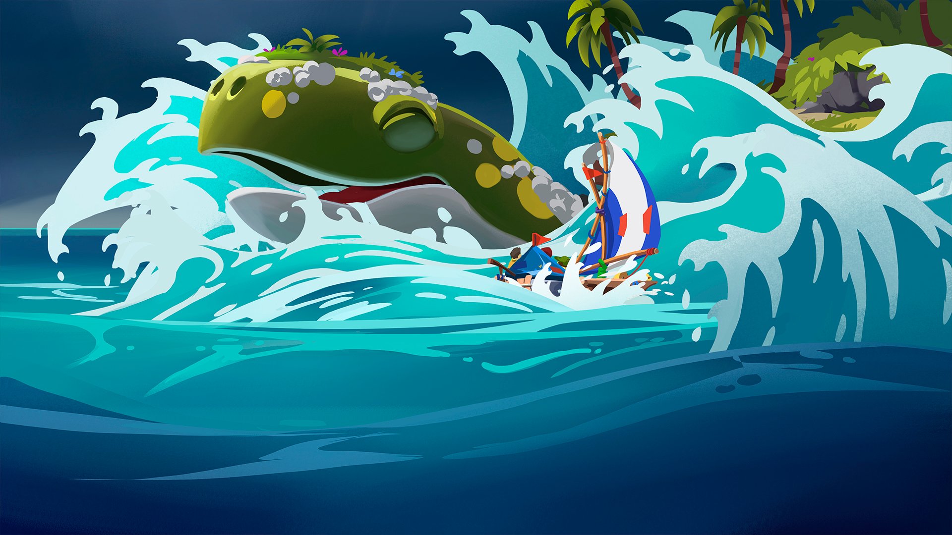 巨大なクジラガメの背にのった独特な島々に迷い込んだプレイヤーは協力して探検、伐採、作成、釣り、料理、謎解きをしながら危険な島から脱出しよう。