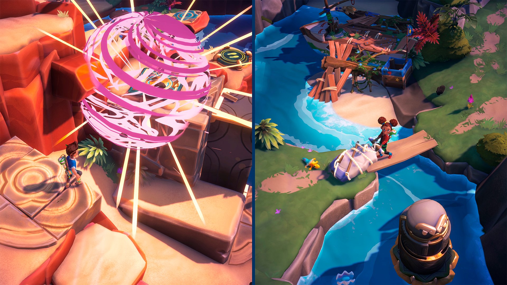 手作りの船で出発すると、突然激しい嵐に襲われて、謎と危険に満ちた未知なる世界に迷い込んでしまう。謎と危険に満ちた世界で協力して冒険を進めよう。