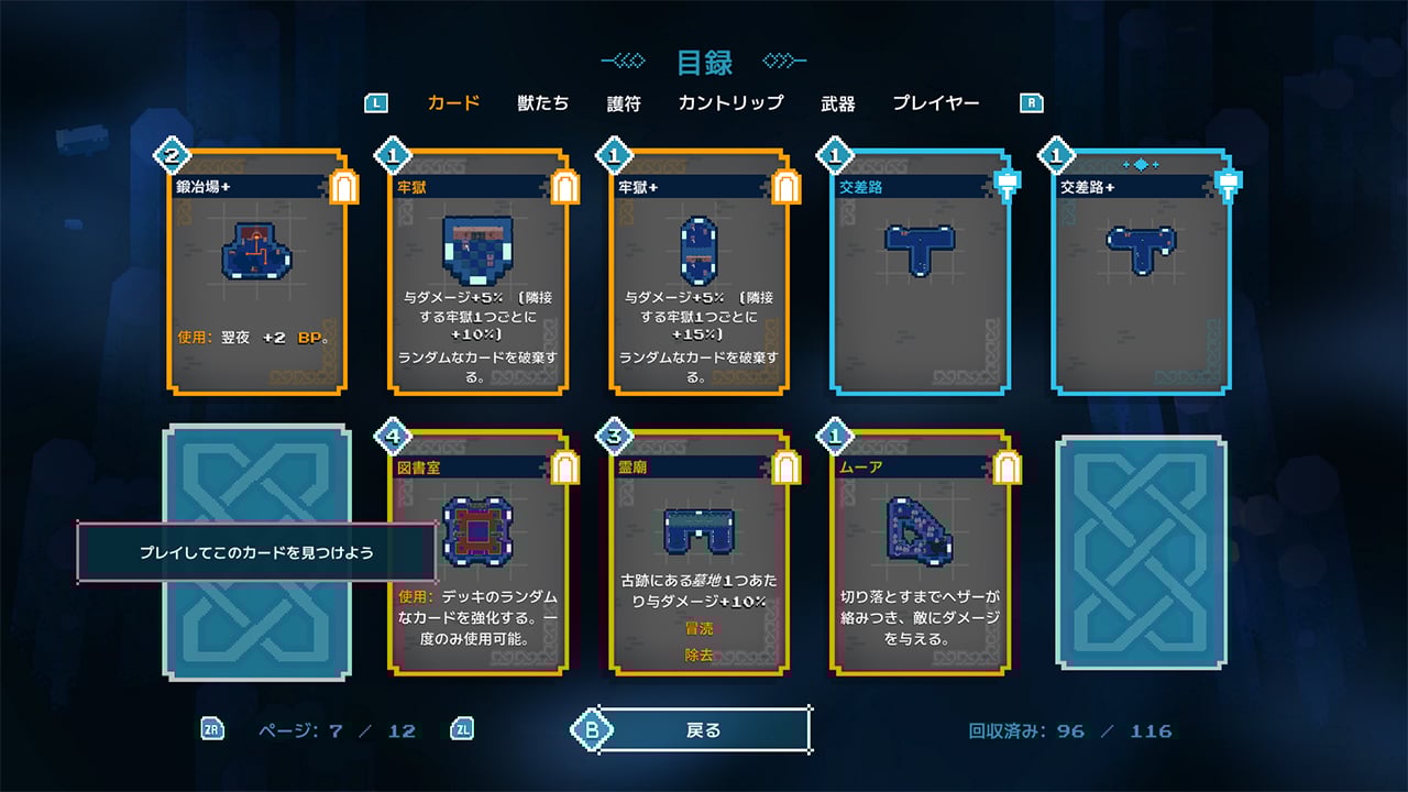 • 終わりのないリプレイ性:プレイする事にダンジョンの構造は新しくなり、毎回高い戦略性を持つゲームプレイを新鮮に楽しめる。ルールを書き換える要素や、隠された残響の他に、勝利を通じてカードの種類を増やすことができる。