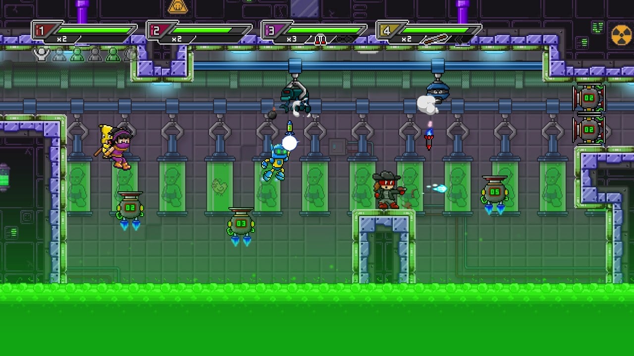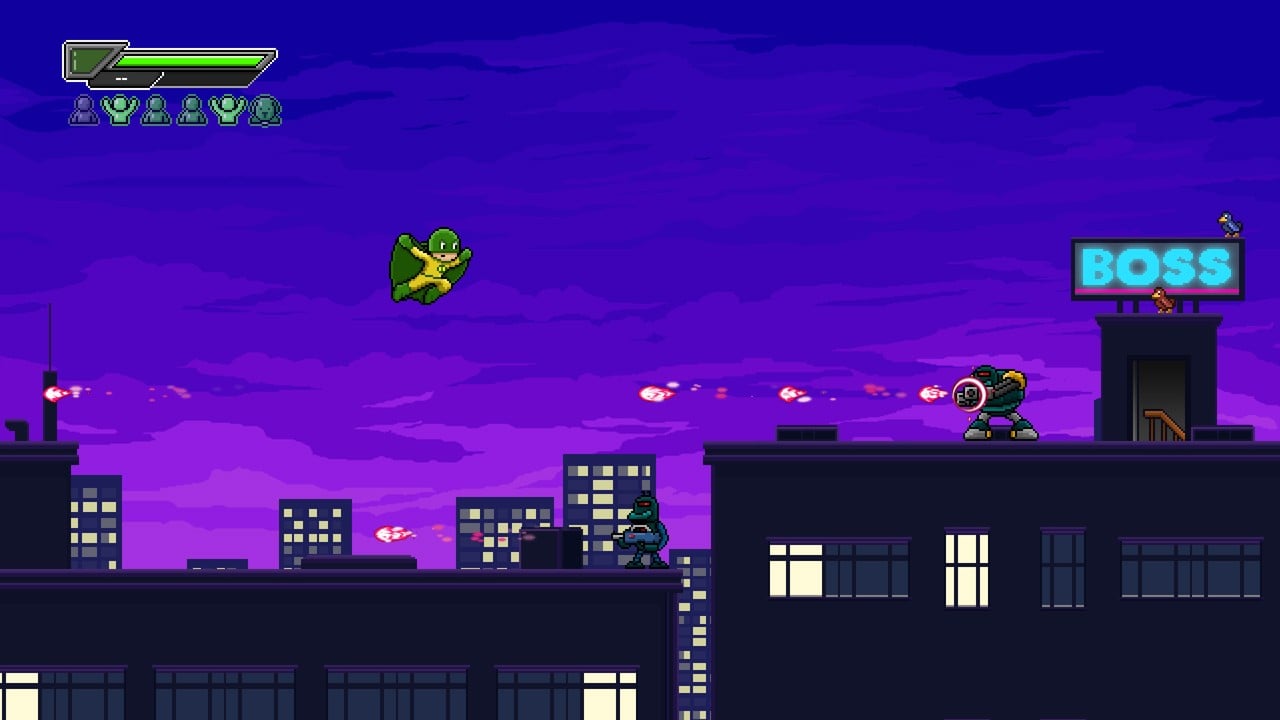 ボスに勝利しステージをクリアするだけでなく、各ステージ上には5人の人物と1匹の犬が救出を待っています。ヒーローらしく活躍しましょう。