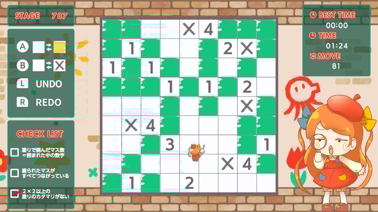 「ぬりろじ1000」はシンプルルールのロジックパズルゲームです。