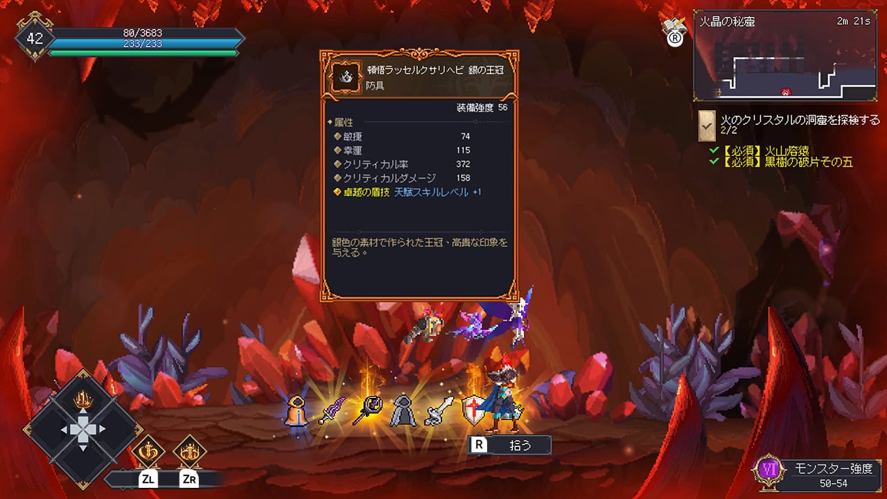 20時間以上のユニークなメインストーリー:繰り返しではなく充実した冒険を楽しめる。さらに、ローグライクのリプレイ性と解放可能な高難度モードも用意。