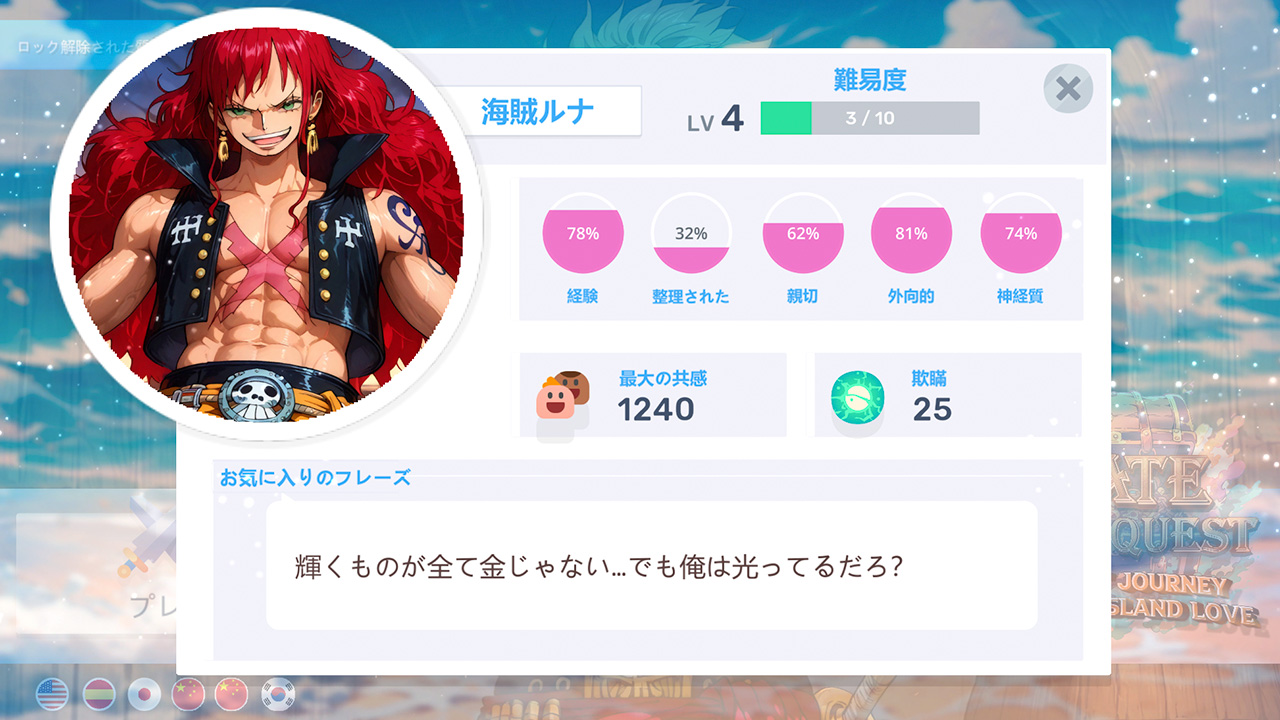 野性的な魅力と隠された傷を持つ魅力的な海賊たちと出会い、彼らの冒険だけでなく、内に秘めた感情の嵐にも寄り添え。