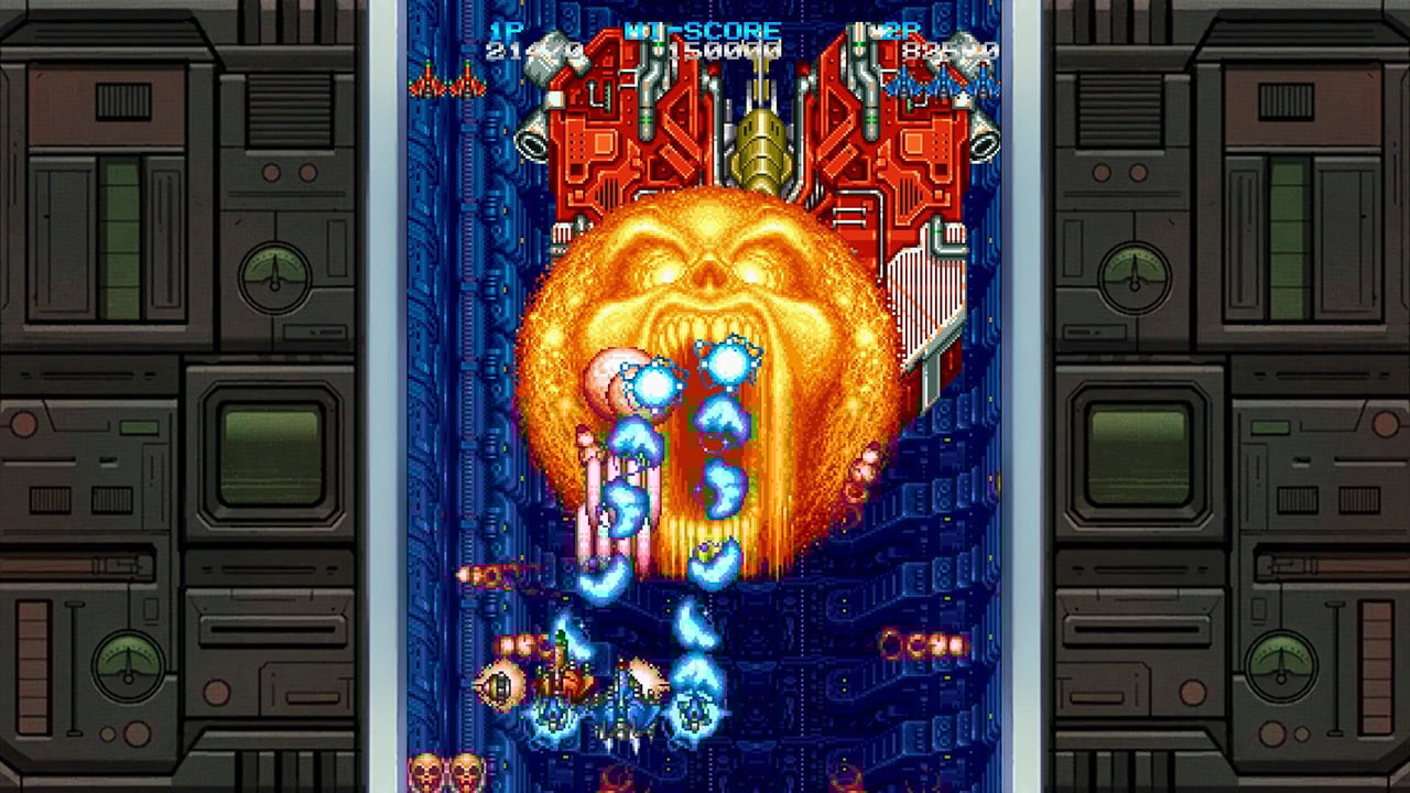 3種の特徴的なショットパワーアップや、画面上に大きく描かれるドクロ型のボンバー、複数機で襲い来る手強い中型ボスなど、東亜プランのビジュアルイメージを決定づけた縦スクロールシューティング。