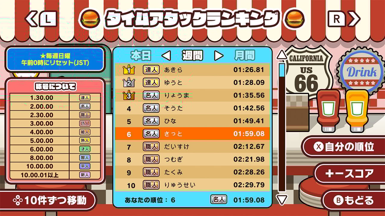 最高レベルの「キングバーガー」を作るまでの早さを競おう!