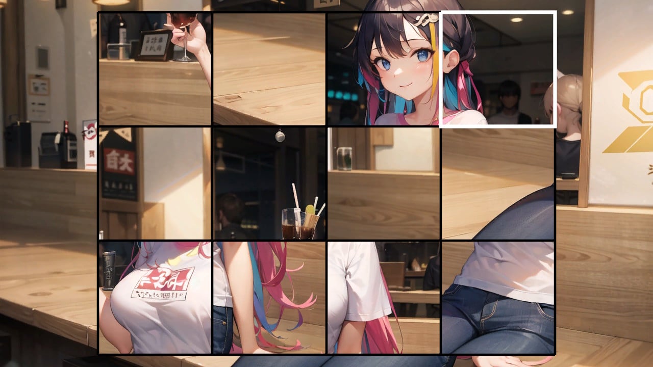可愛いアニメ絵の女の子パズルを完成させよう!パズルが完成すると、好きな時間にギャラリーで女の子たちを鑑賞することができます。