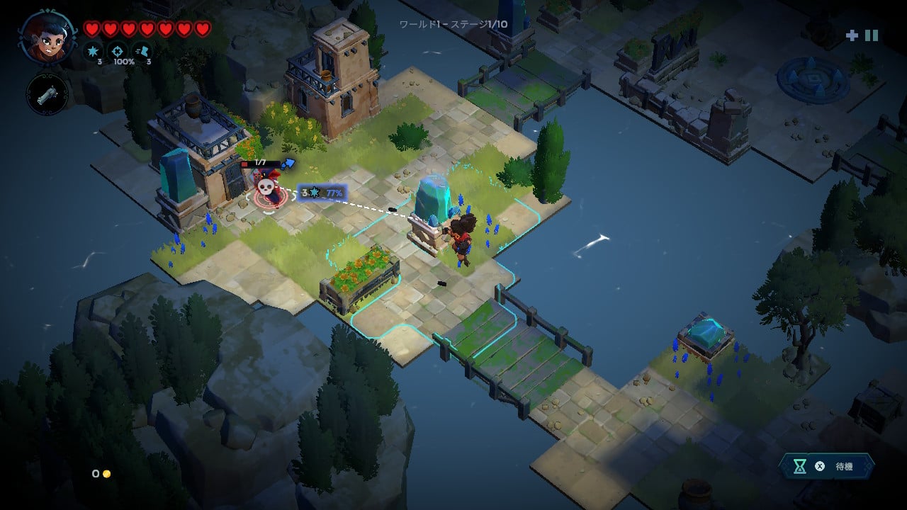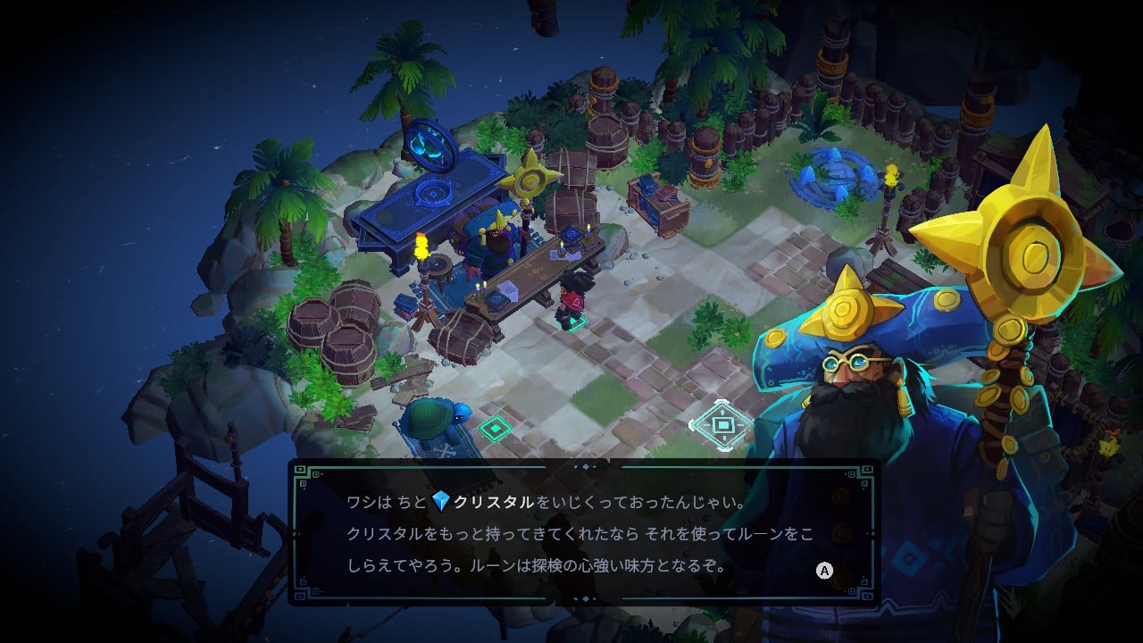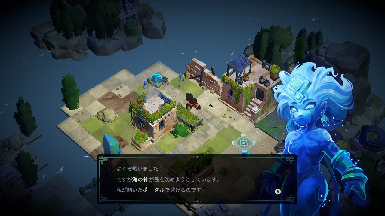 死も冒険の一部:死ぬたびに故郷の島へ戻り、恒久的なアップグレードを行うか、次の日の戦略を練り直すことができます。